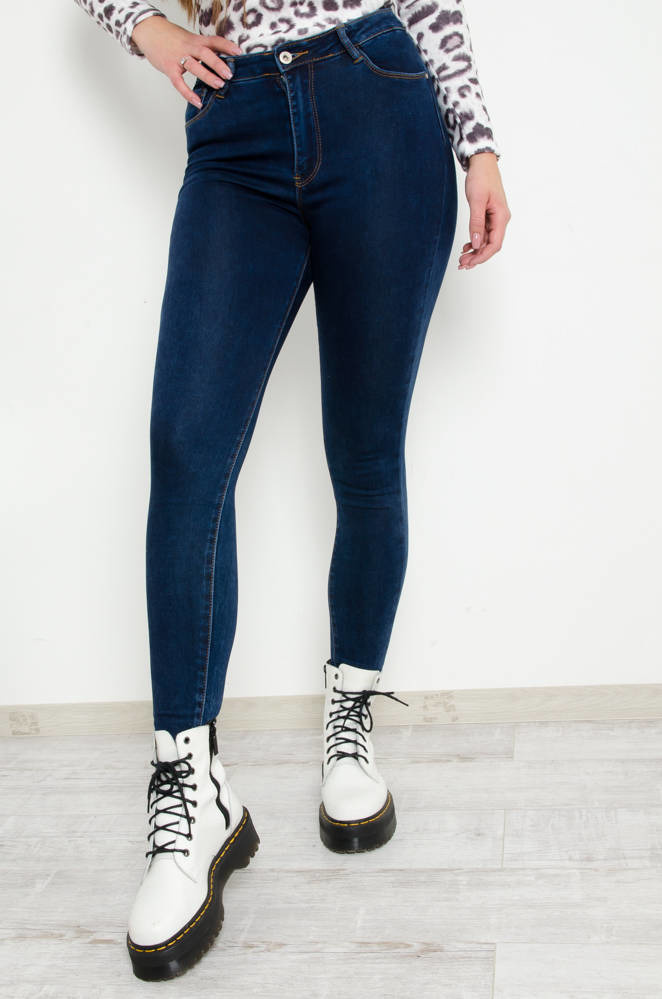 GRANATOWE SPODNIE JEGGINSY Z WYSOKIM STANEM