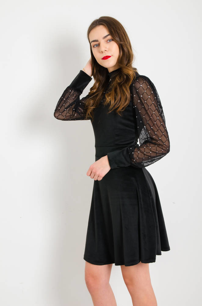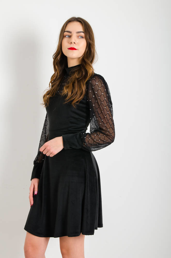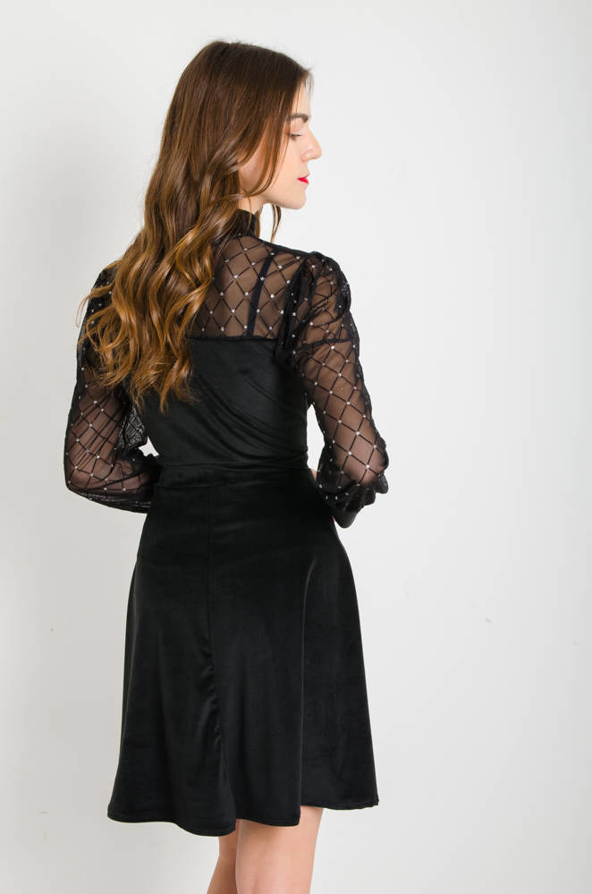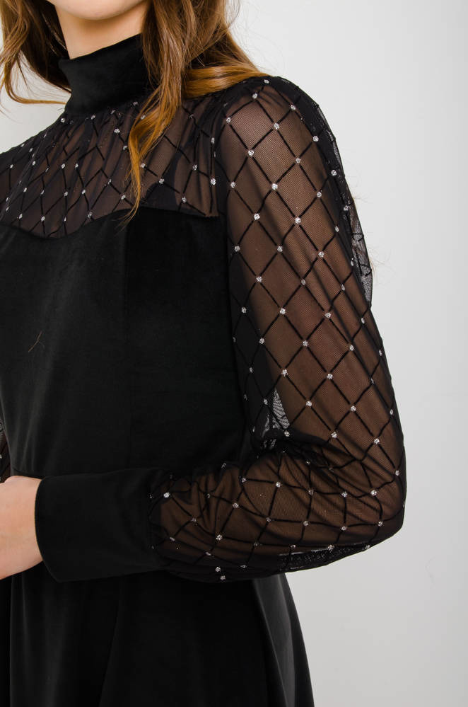 WERULOWA ROZKLOSZOWANA SUKIENKA Z SIATKĄ