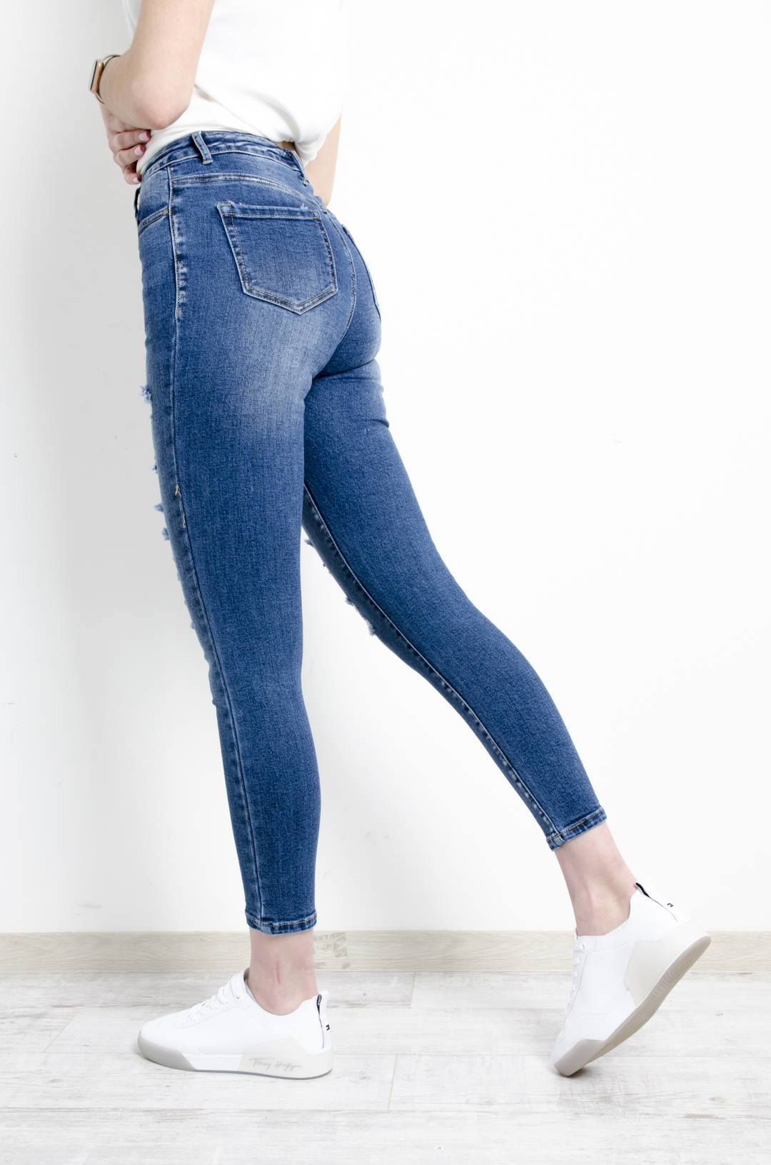 JEANSOWE PRZYLEGAJĄCE SPODNIE Z PRZETARCIAMI- WYSOKI STAN