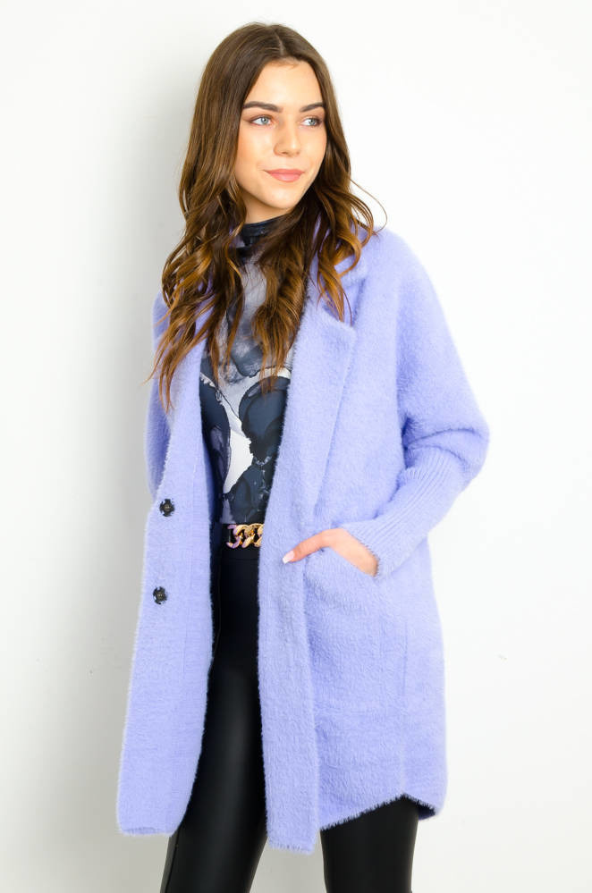 PŁASZCZ DŁUGI WEŁNIANY ALPAKA- JASNO-FIOLETOWY
