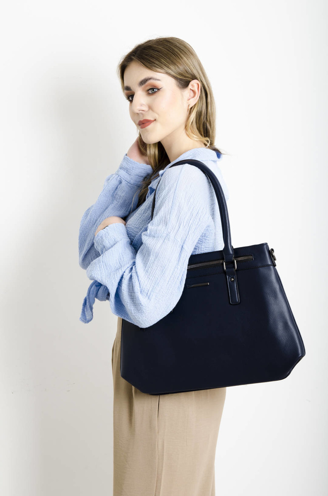 GRANATOWA TOREBKA Z IMITACJI SKÓRY TYPU SHOPPER