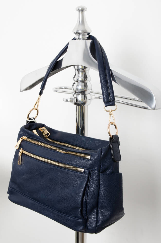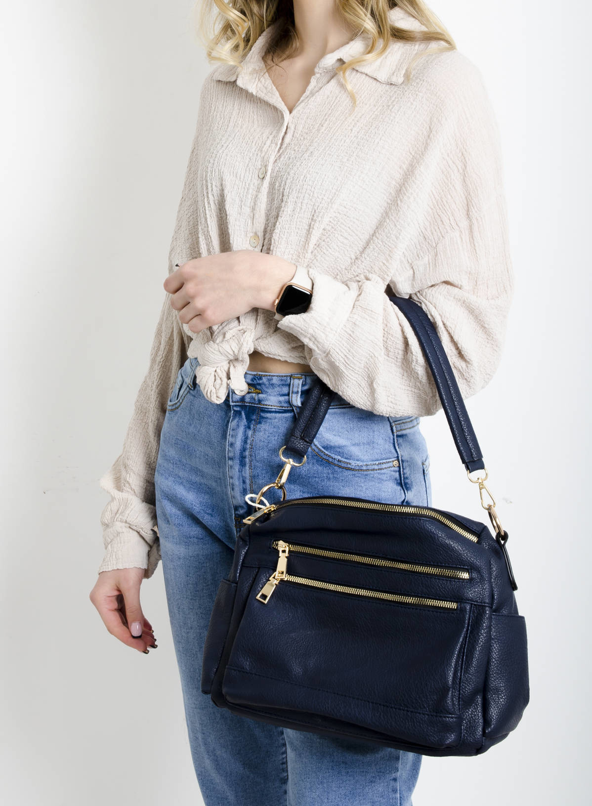 GRANATOWA TOREBKA TYPU SHOPPER Z OZDOBNYMI ZAMKAMI