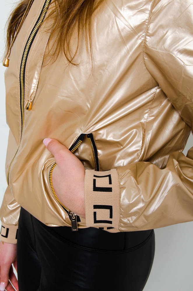 BEŻOWA POŁYSKUJĄCA KURTKA WIOSENNA Z KAPTUREM