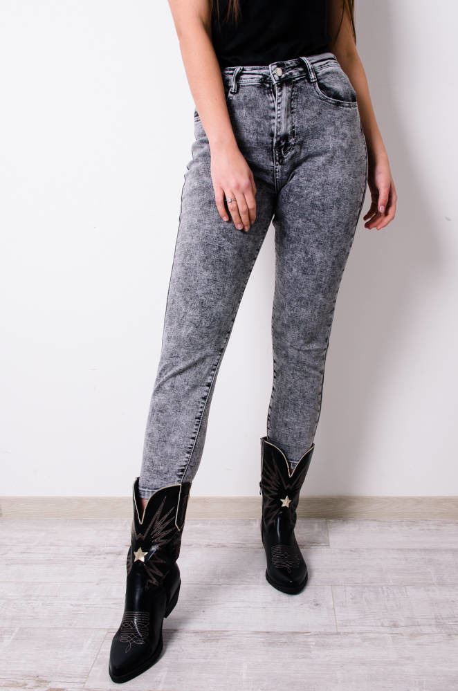 SZARE DEKATYZOWANE SPODNIE JEANSOWE Z WYSOKIM STANEM