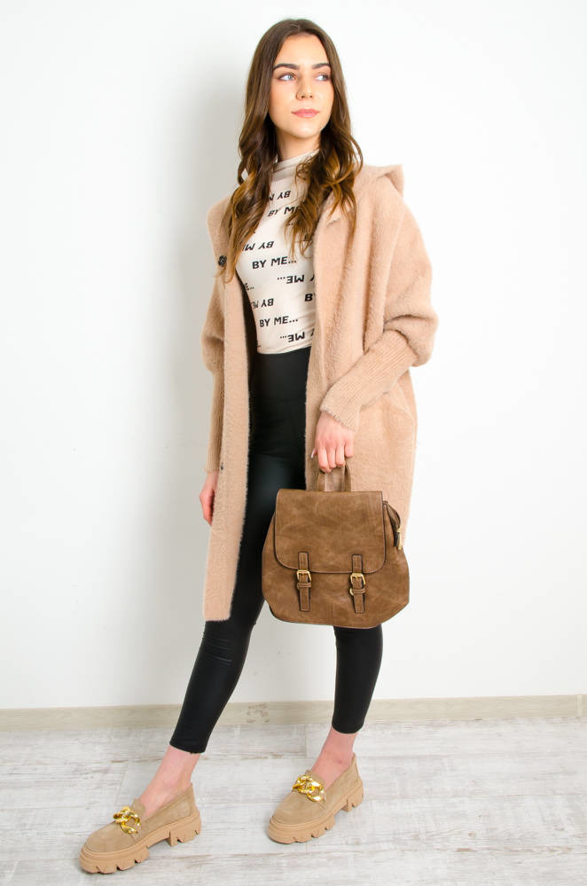 BRĄZOWY PLECAK Z IMITACJI SKÓRY Z OZDOBNYM ZAPIĘCIEM