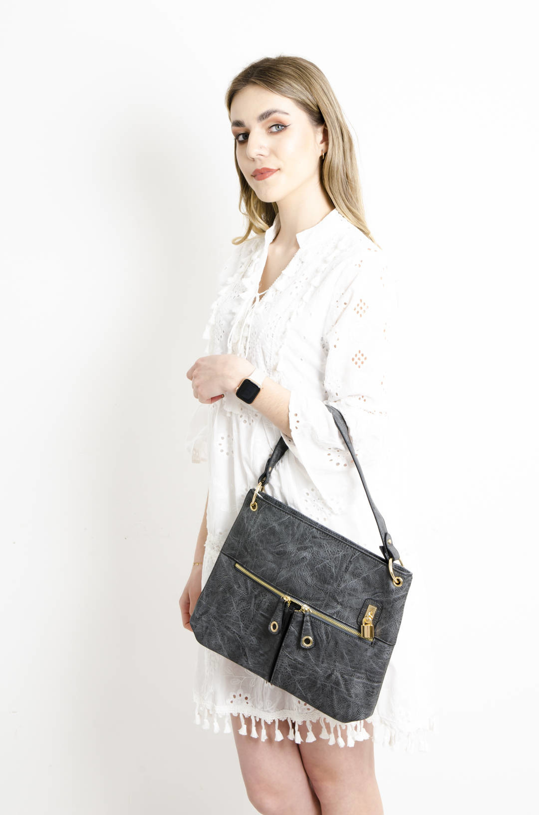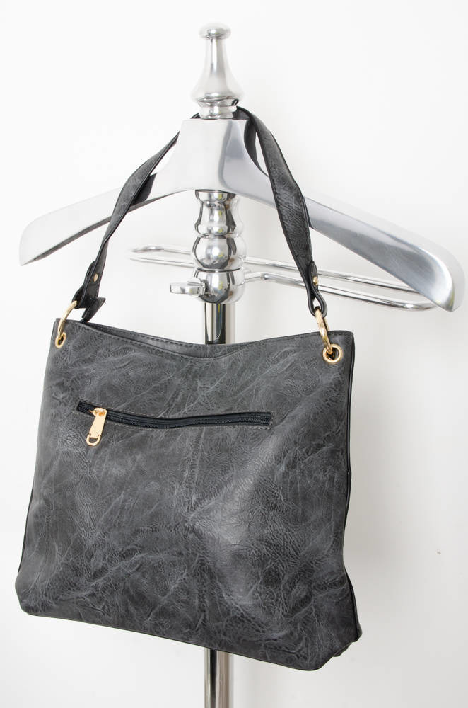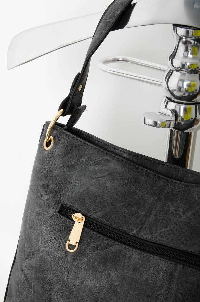 SZARA TOREBKA SHOPPER Z OZDOBNYM PRZESZYCIEM I ZAMKAMI
