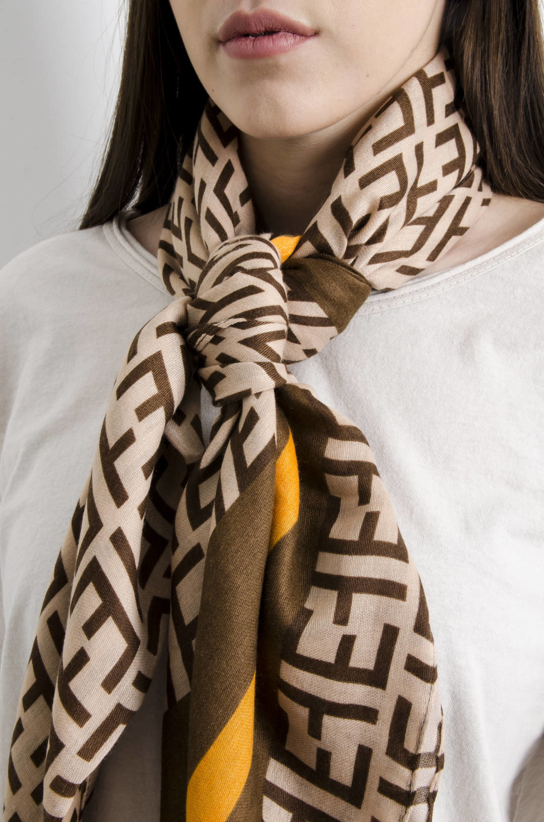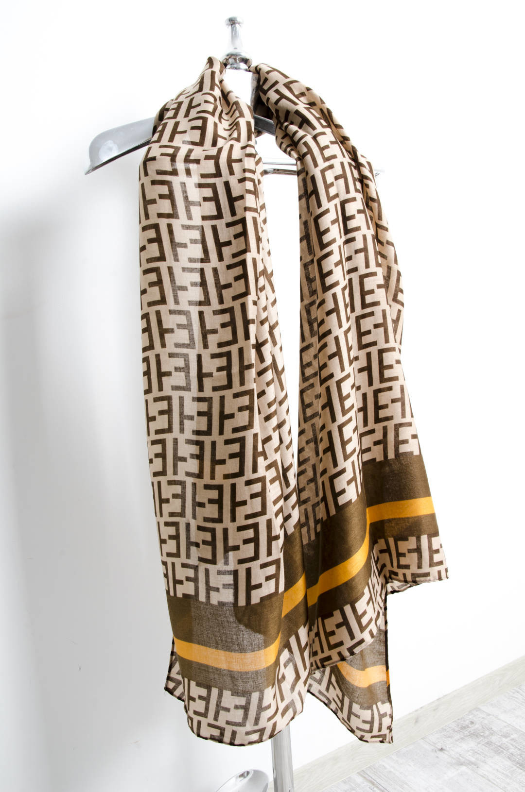BEŻOWO-BRĄZOWY SZAL WE WZORY