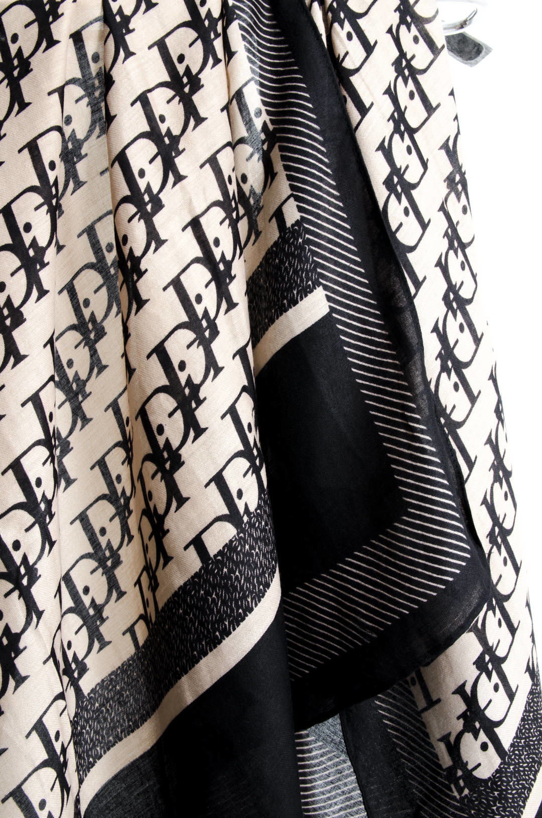 BEŻOWO-CZARNY WZORZYSTY SZAL