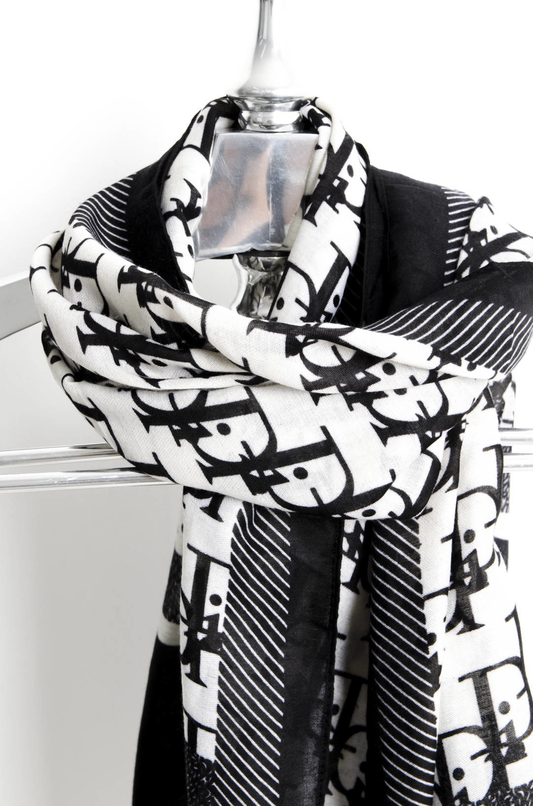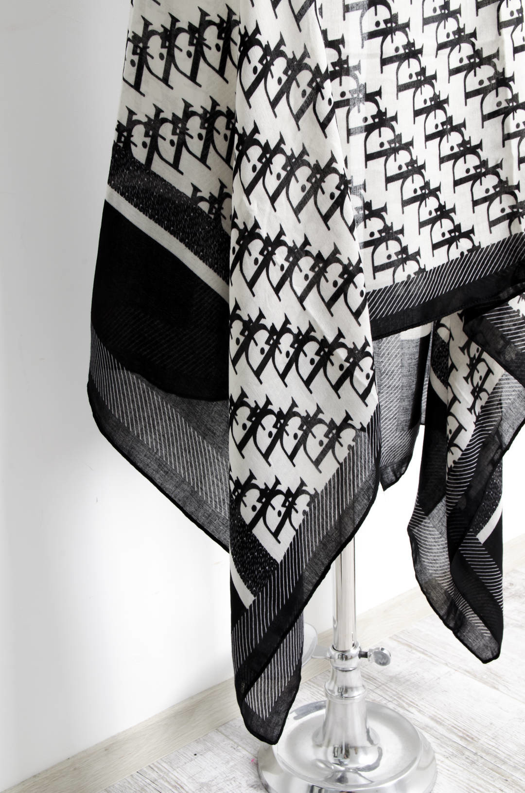 SZAL BIAŁO-CZARNY WZORZYSTY