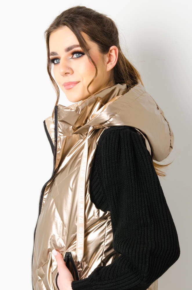 KAMIZELKA PIKOWANA Z KAPTUREM - ZŁOTA