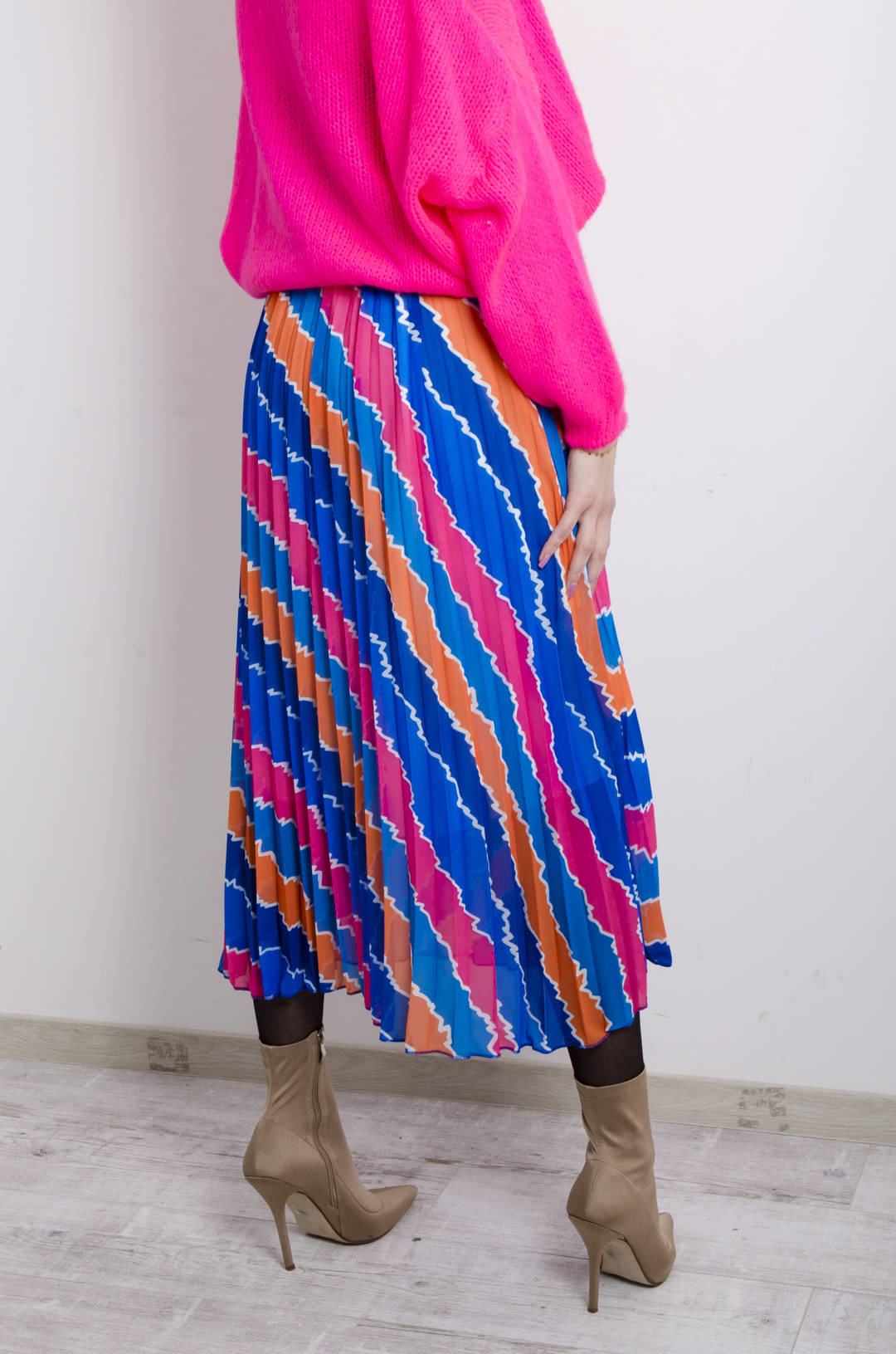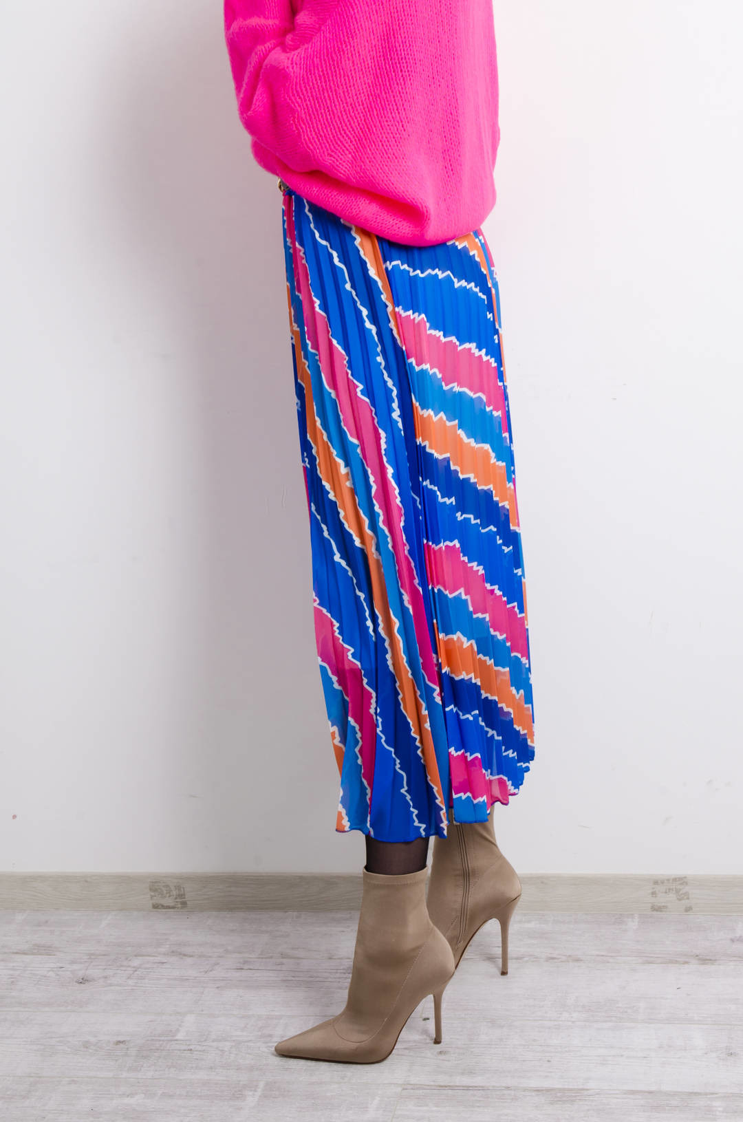 SPÓDNICA WZORZYSTA PLISOWANA Z PASKIEM- NIEBIESKA