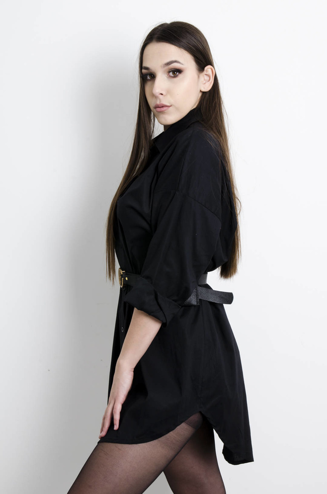 KOSZULA DŁUGA Z PASKIEM I SASZETKĄ- CZARNA
