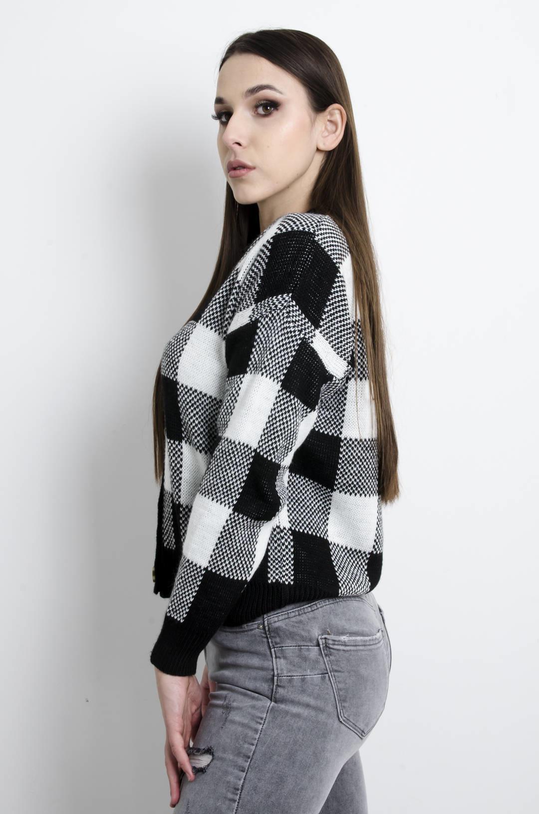 SWETER CZARNY W SZACHOWNICĘ