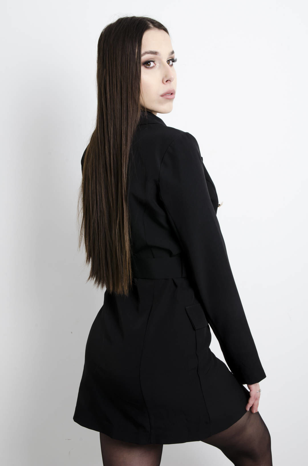 SUKIENKA CZARNA MARYNARKA Z PASKIEM