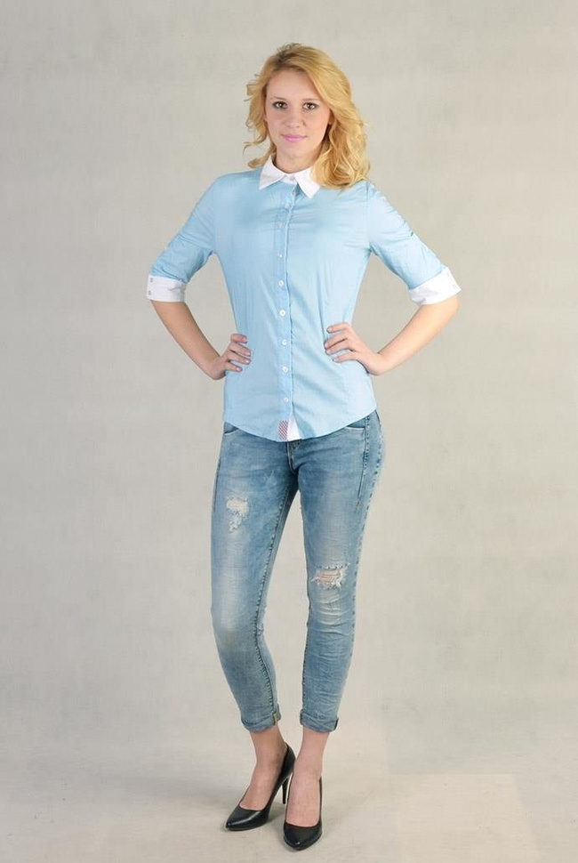 Klasyczna taliowana, elegancka koszula damska zapinana na guziki, z krótkim rękawem.