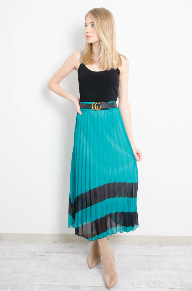 SPÓDNICA PLISOWANA Z PASKIEM - ZIELONA