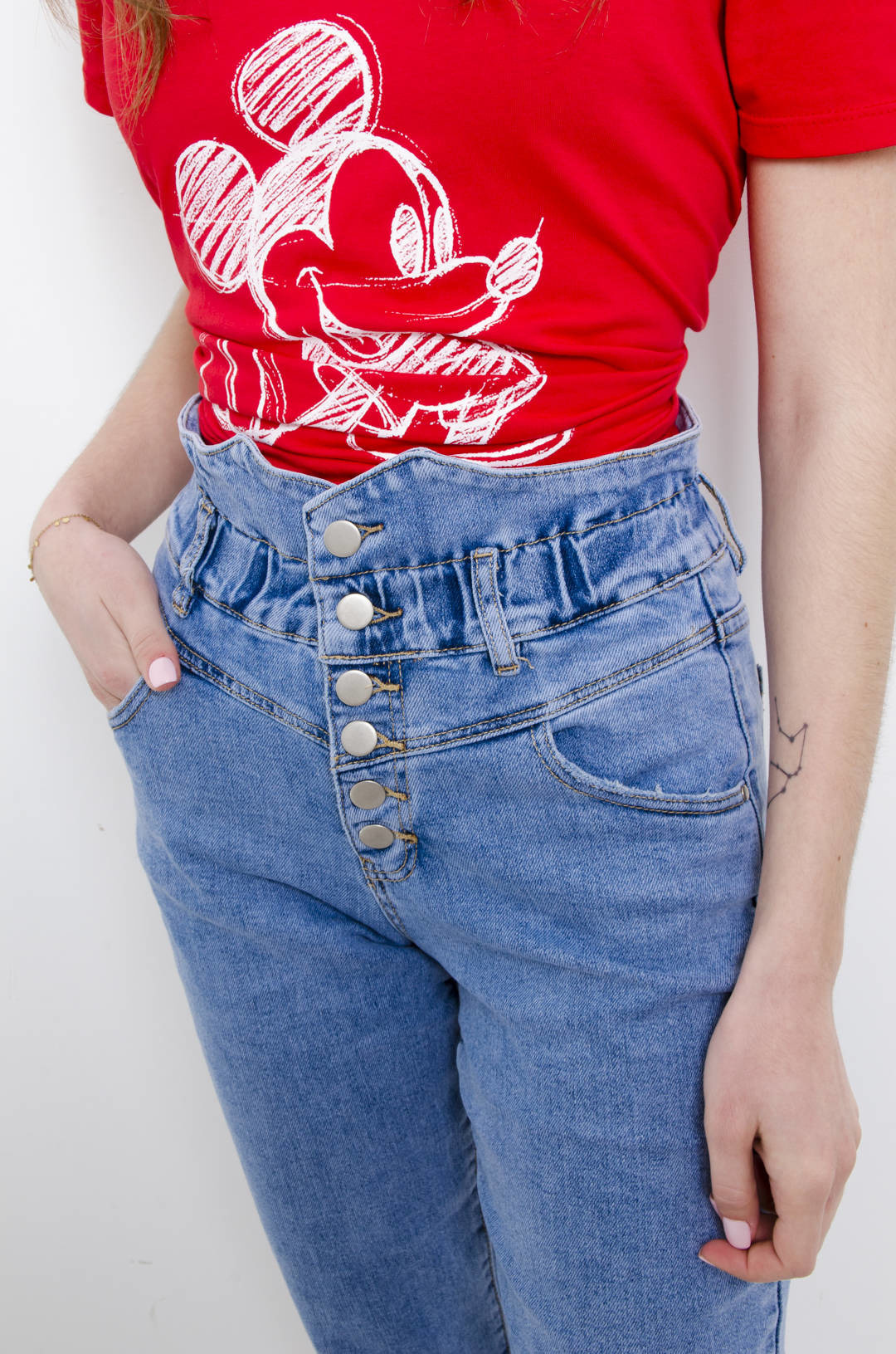 SPODNIE JEANSOWE MOM FIT Z GUZIKAMI -WYSOKI STAN