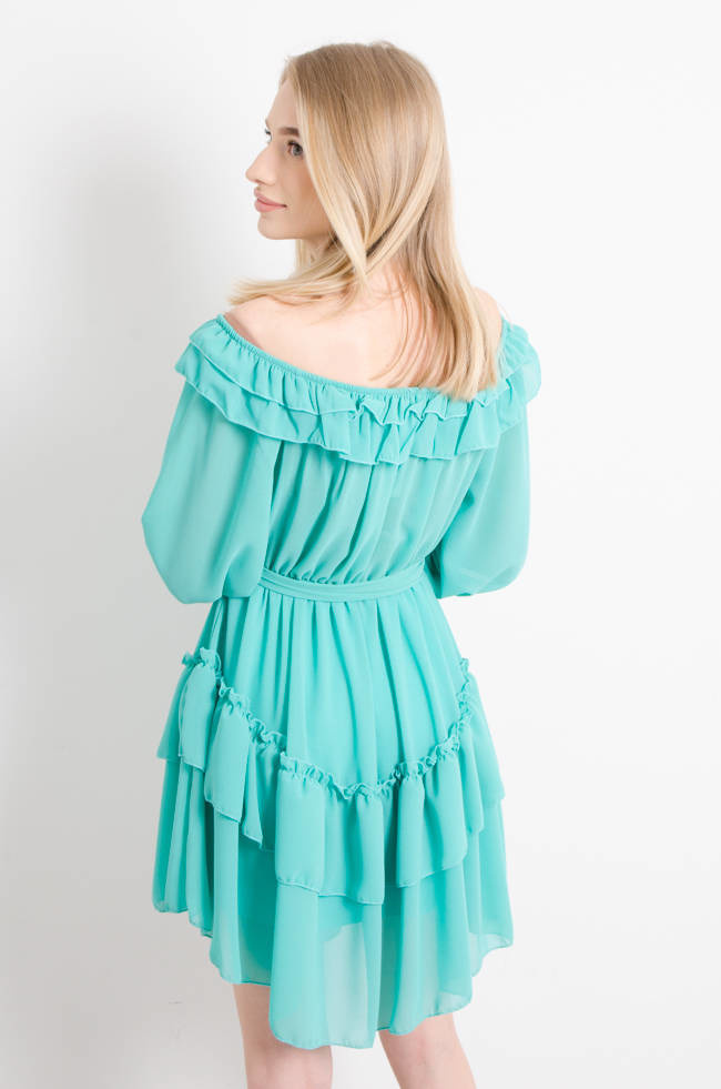 SUKIENKA SZYFONOWA Z HISZPAŃSKIM DEKOLTEM ZIELONA
