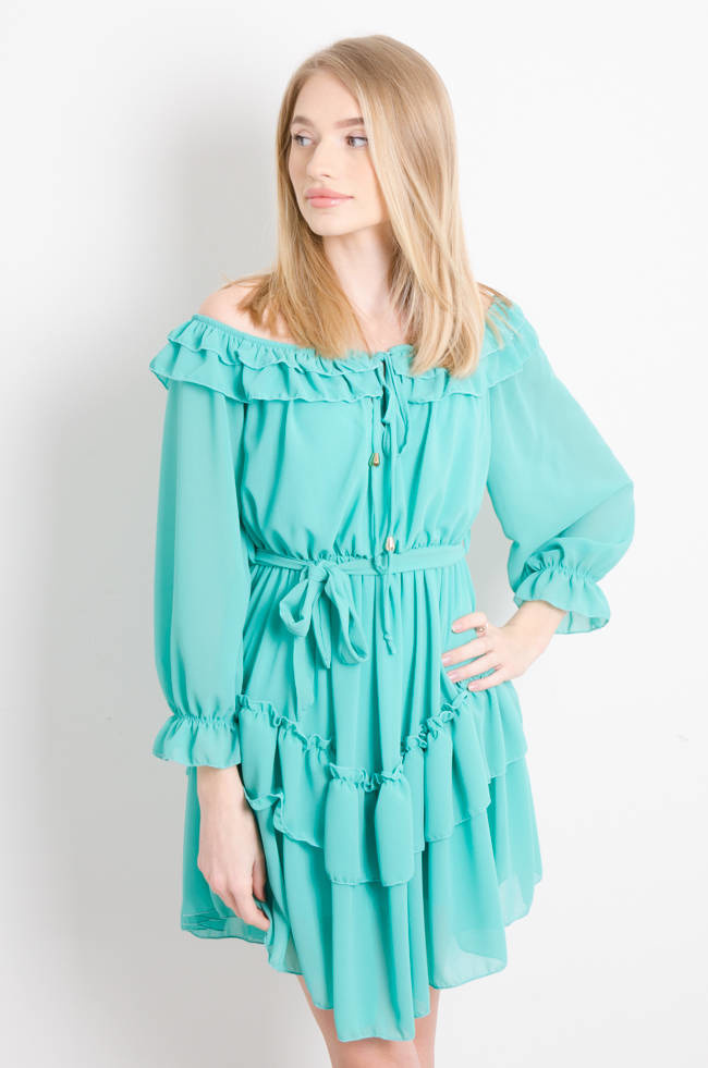 SUKIENKA SZYFONOWA  Z HISZPAŃSKIM DEKOLTEM ZIELONA