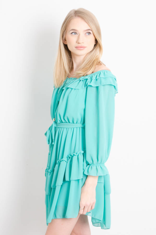 SUKIENKA SZYFONOWA  Z HISZPAŃSKIM DEKOLTEM ZIELONA