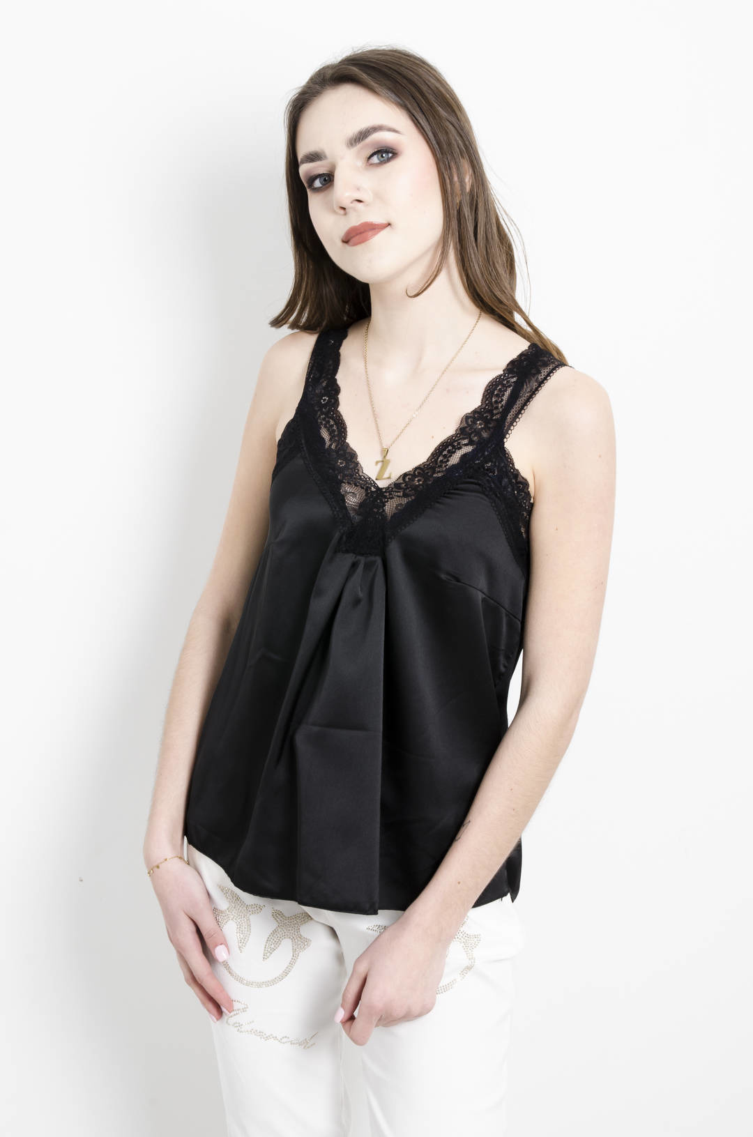 SATYNOWY TOP NA RAMIACZKACH WYKOŃCZONY KORONKĄ