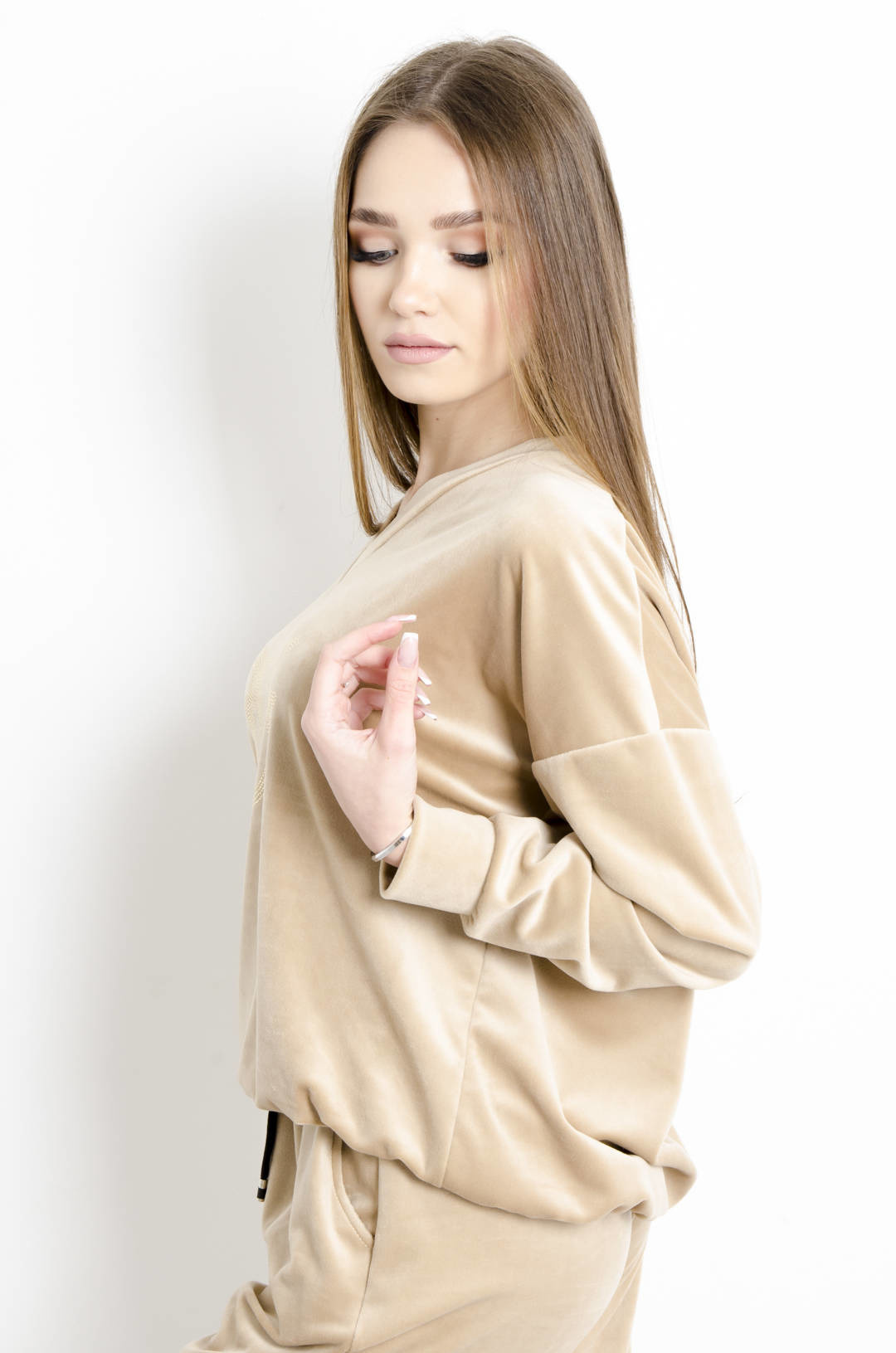 KOMPLET DRESOWY WELUROWY BEŻOWY