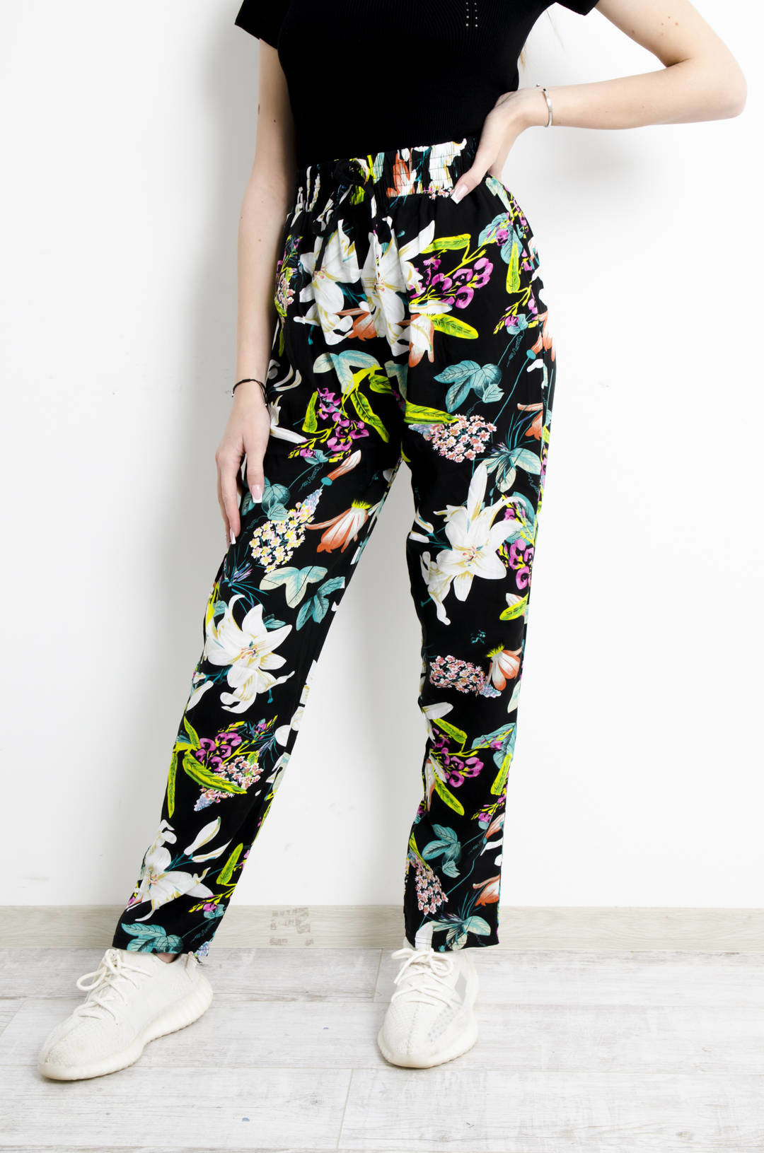 CZARNE ALLADYNKI W KWIATY Z WYSOKIM STANEM