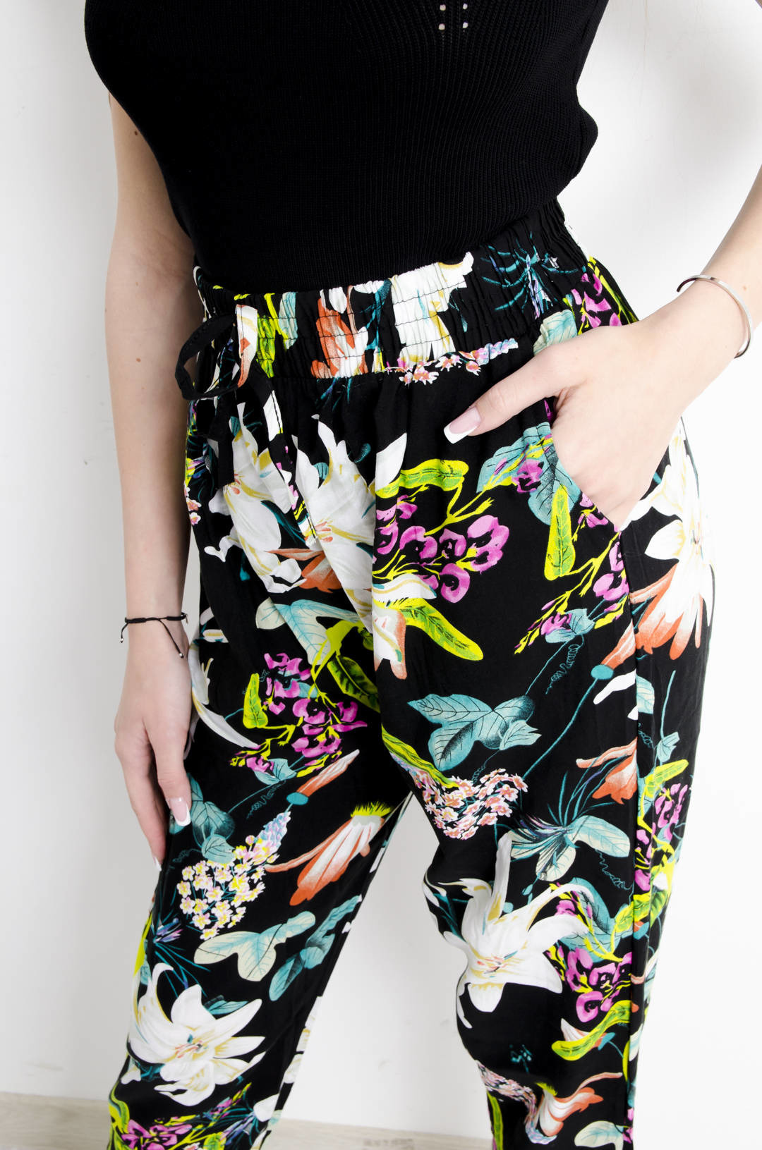 CZARNE ALLADYNKI W KWIATY Z WYSOKIM STANEM