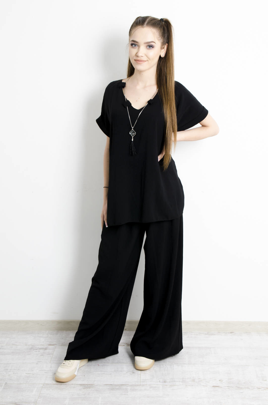 KOMPLET CZARNY Z OZDOBNYM WISIORKIEM
