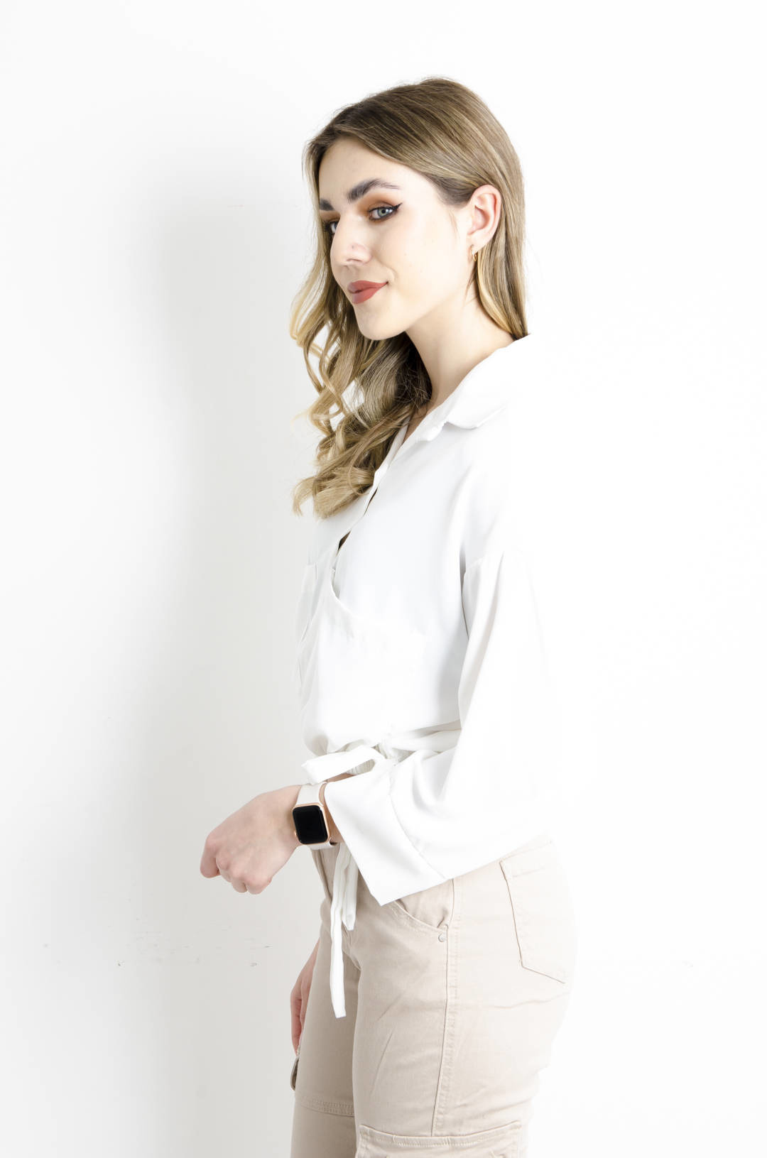 KOSZULA KRÓTKA ZE ŚCIĄGACZEM- BIAŁA