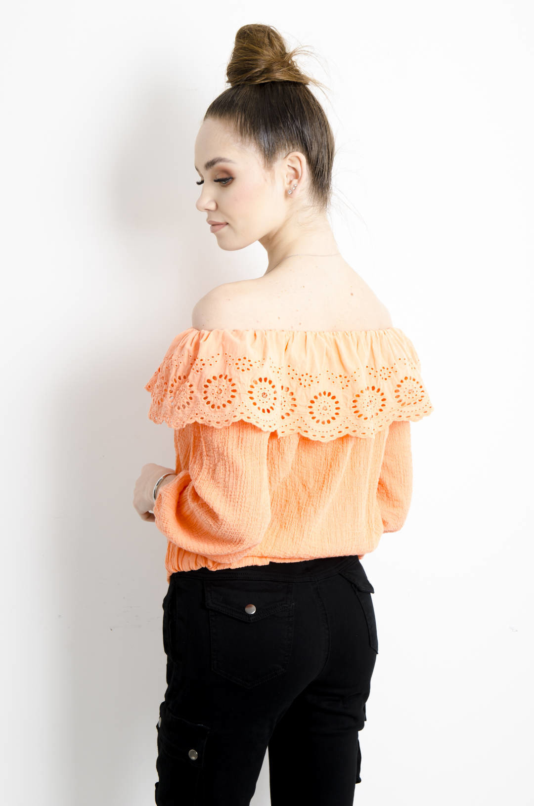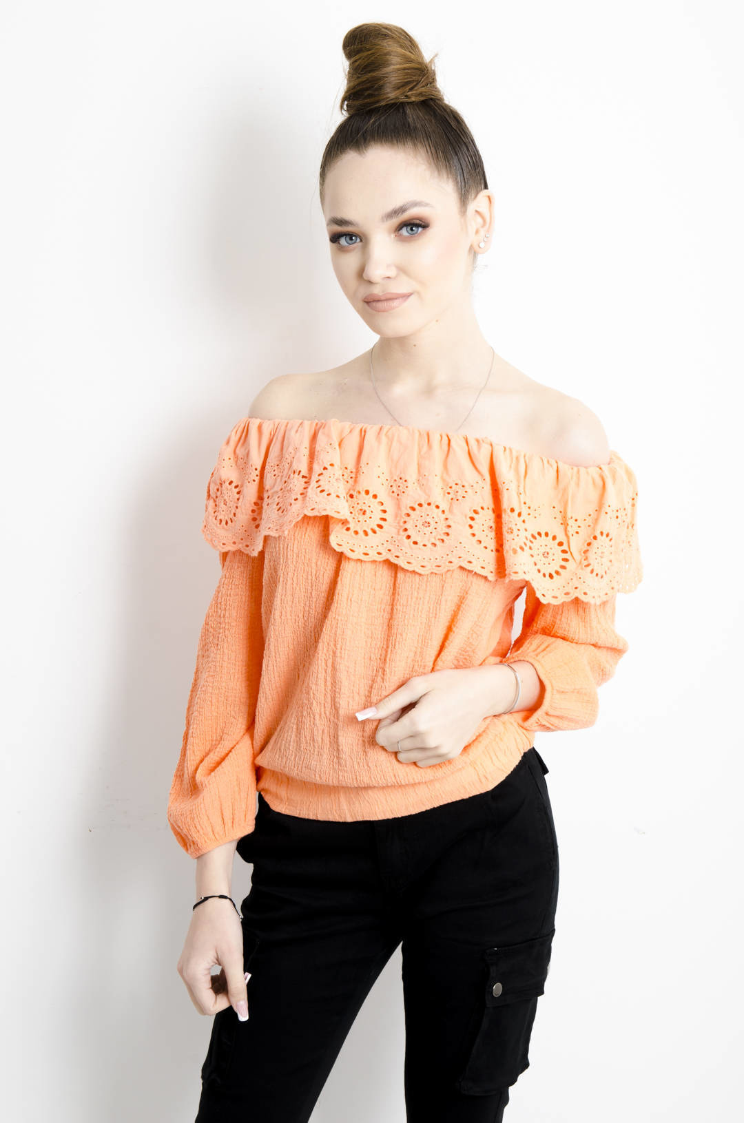 BLUZKA HISZPANKA Z KORONKĄ - POMARAŃCZOWA