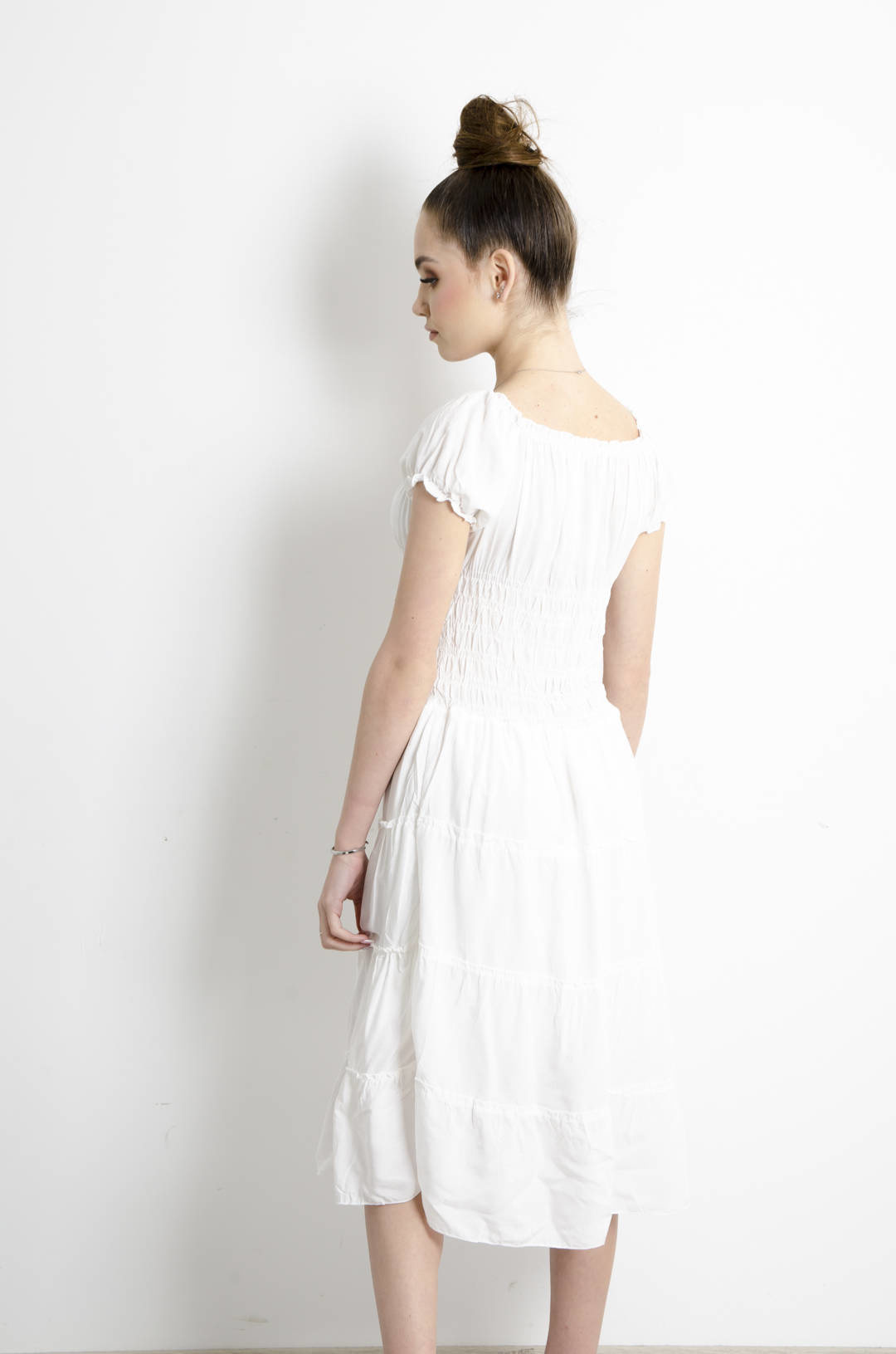SUKIENKA HISZPANKA MIDI Z GUMĄ W PASIE- BIAŁA