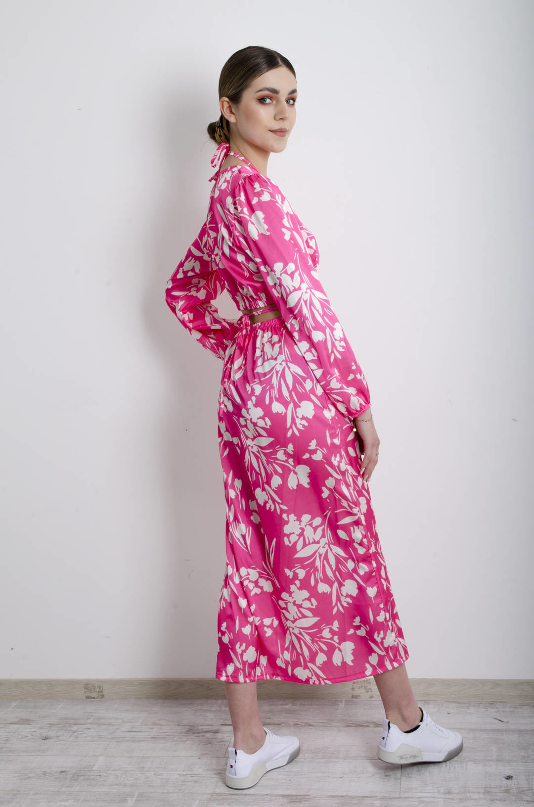 SUKIENKA RÓŻOWA W KWIATY Z WYCIĘCIEM