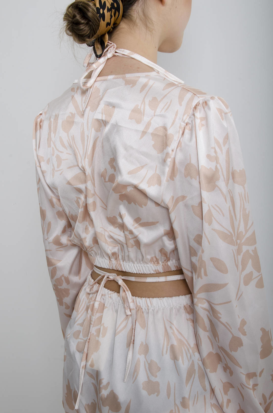 SUKIENKA BIAŁA W KWIATY Z WYCIĘCIEM
