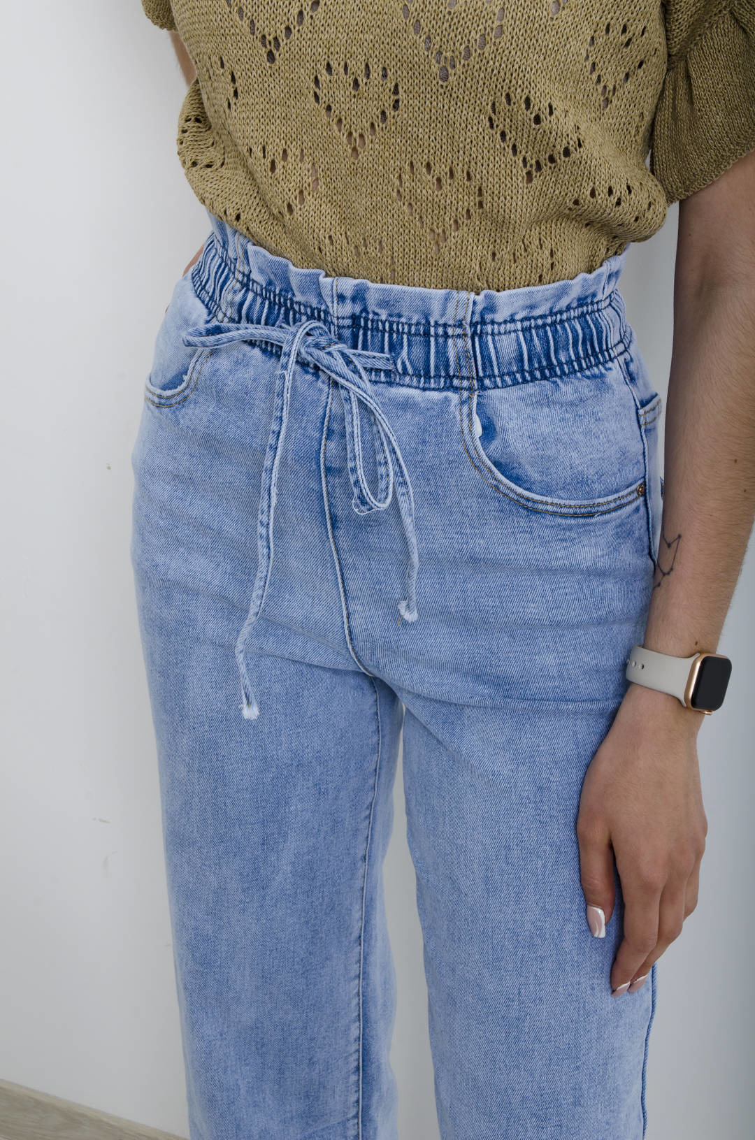 SPODNIE JEANSOWE MOM FIT Z DZIURAMI- ZIELONE