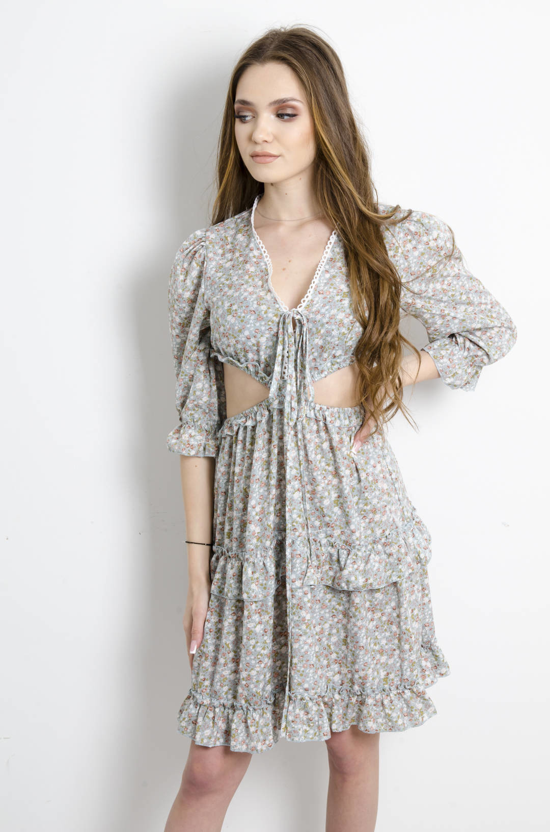 SUKIENKA ZIELONA W KWIATY Z WYCIĘCIEM