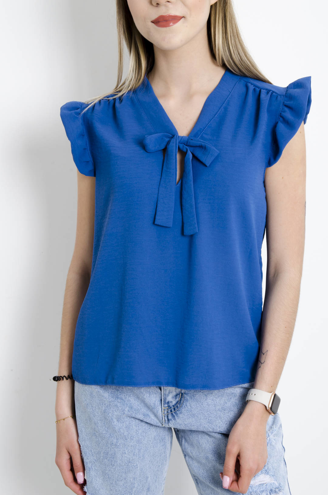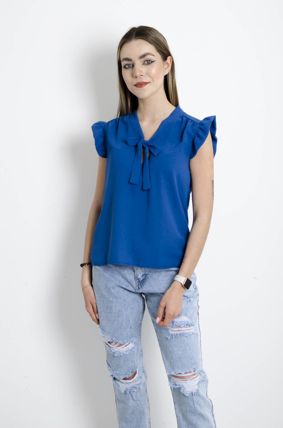 BLUZKA Z WIĄZANIEM GRANATOWA
