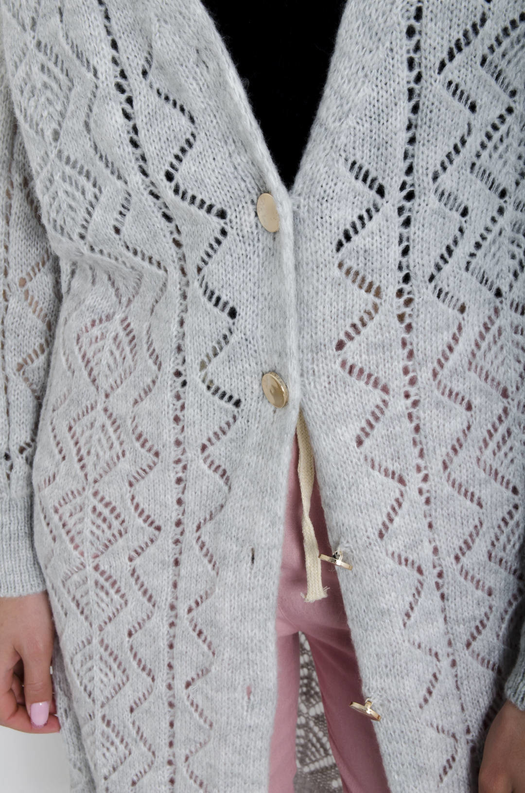 NARZUTA DŁUGA AŻUROWA ZAPINANA NA GUZIKI- SZARA