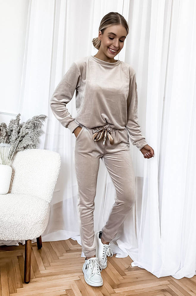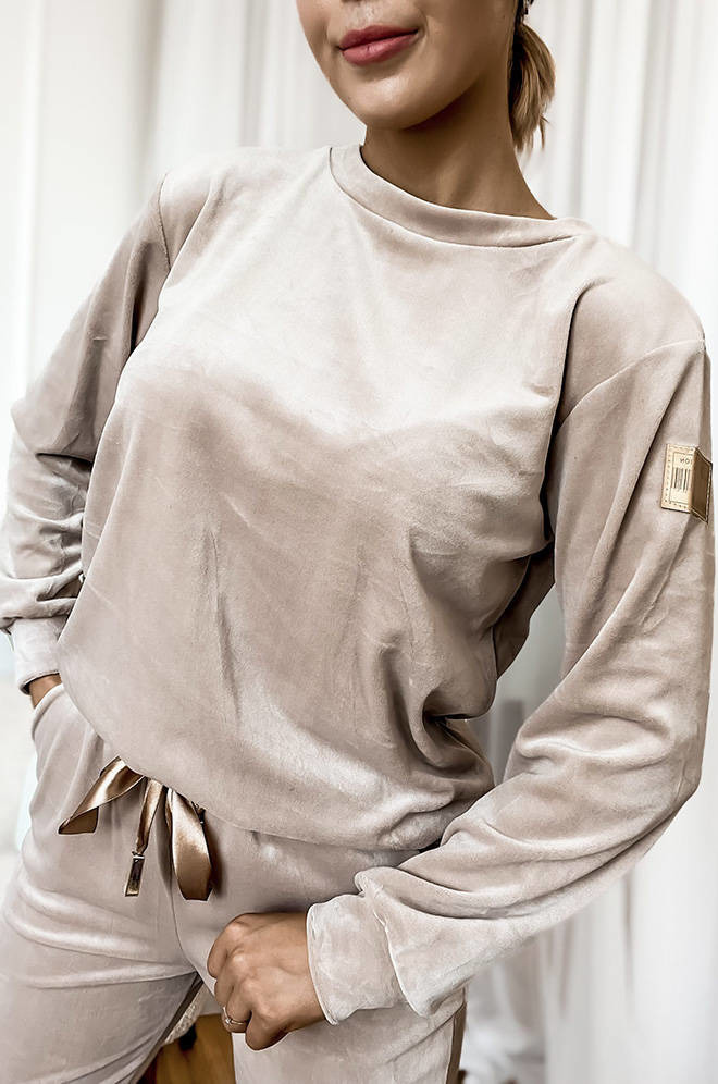 KOMPLET DRESOWY WELUROWY Z OZDOBNĄ NASZYWKĄ- BEŻOWY