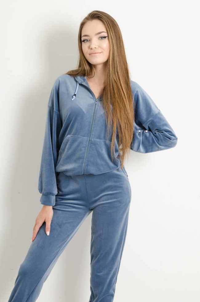WELUROWY KOMPLET DRESOWY ROZPINANY Z KAPTUREM- NIEBIESKI