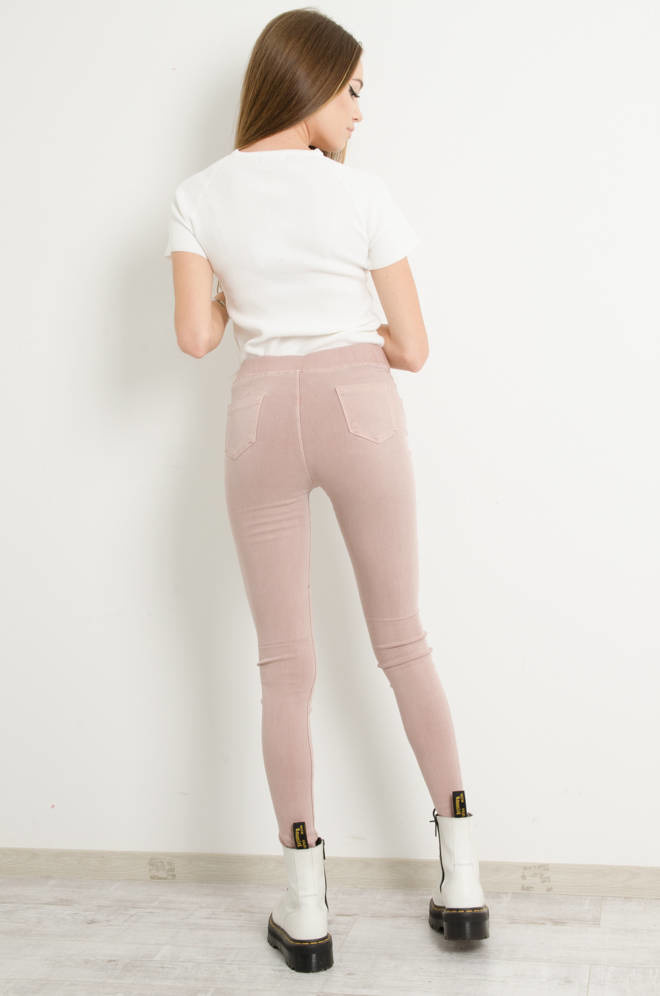 RÓŻOWE JEANSY Z WYSOKIM STANEM I OZDOBNYMI GUZIKAMI