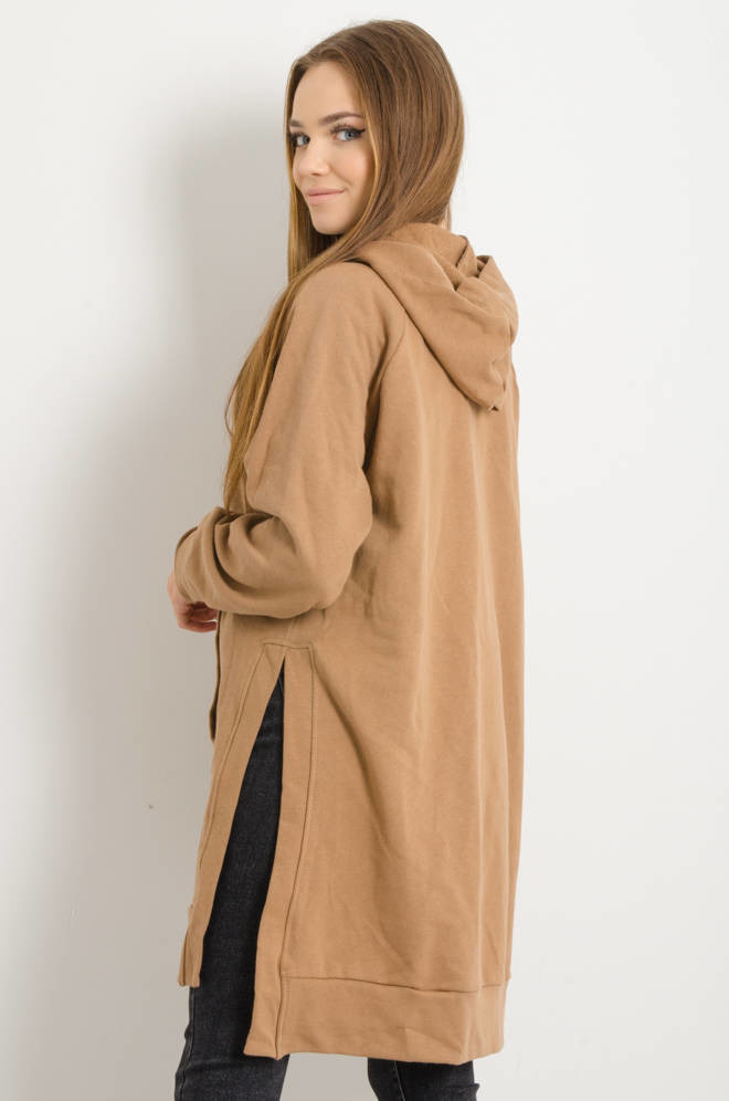 DŁUGA BLUZA KANGURKA Z ROZCIĘCIAMI PO BOKACH- JASNO BRĄZOWA