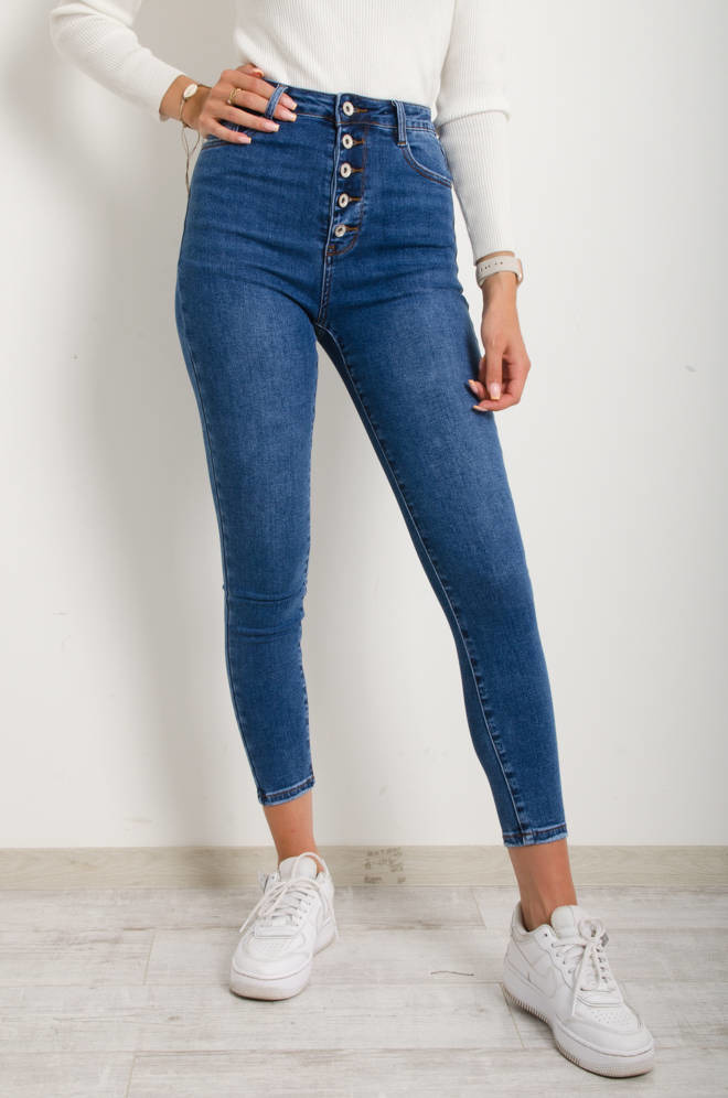 SPODNIE JEANSOWE Z GUZIKAMI- BARDZO WYSOKI STAN