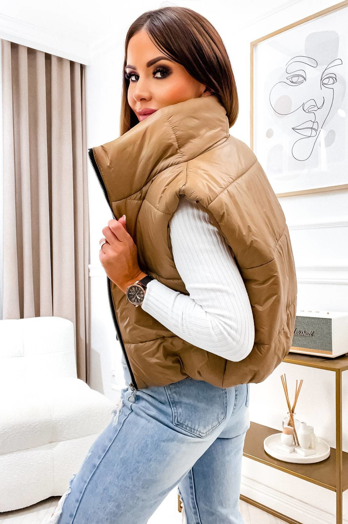 KAMIZELKA PIKOWANA KRÓTKA- BEŻOWA