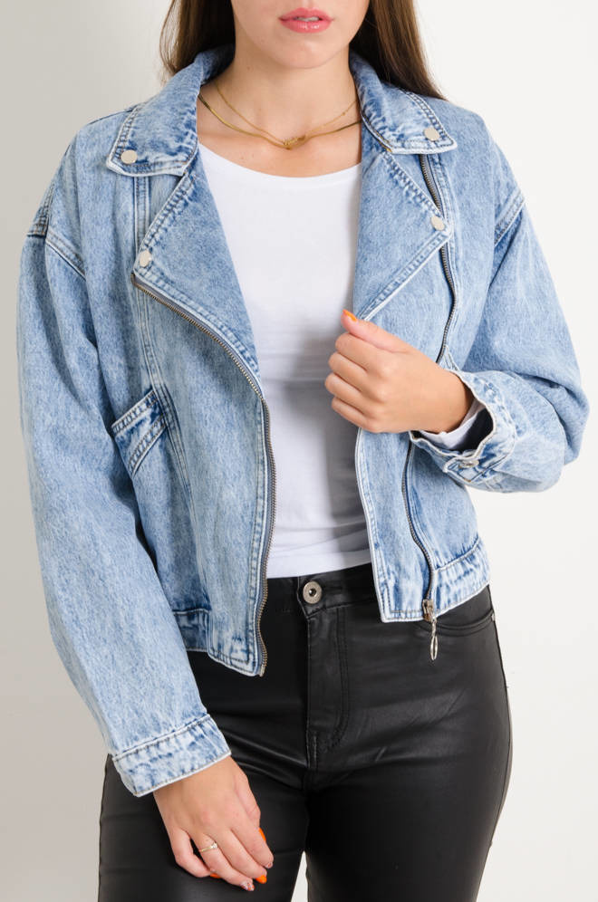 KURTKA JEANSOWA RAMONESKA Z OZDOBNYMI NASZYWKAMI