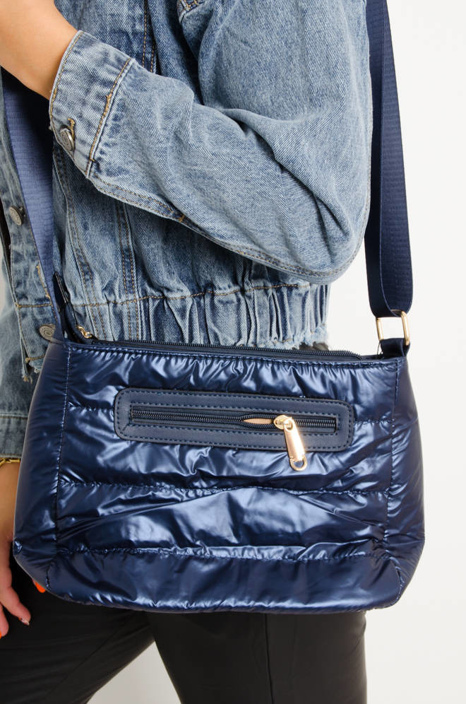 TOREBKA PIKOWANA Z MATERIAŁOWYM PASKIEM- GRANATOWA