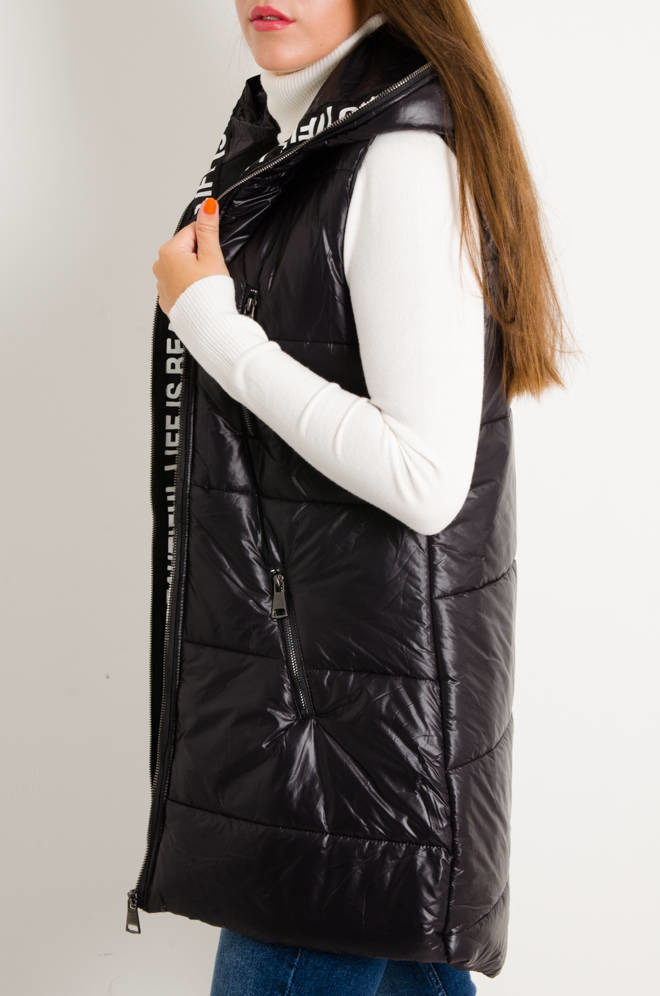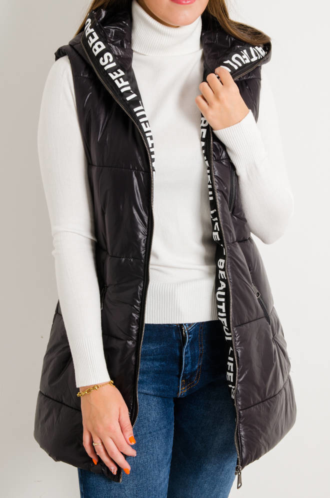 DŁUGA ASYMETRYCZNA KAMIZELKA Z OZDOBNYM PASEM-CZARNA