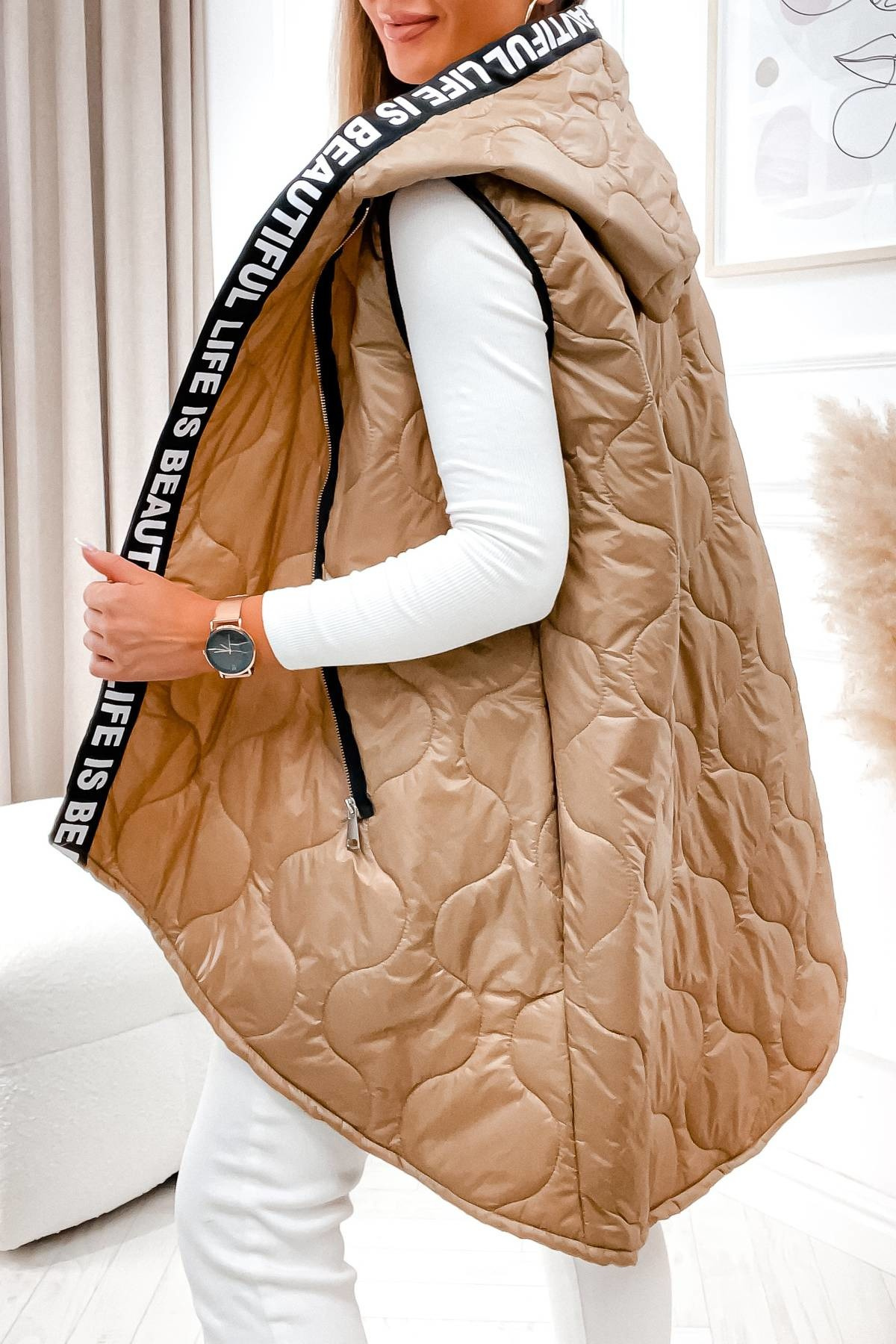 BEŻOWA PIKOWANA KAMIZELKA Z OZDOBNYM PASEM