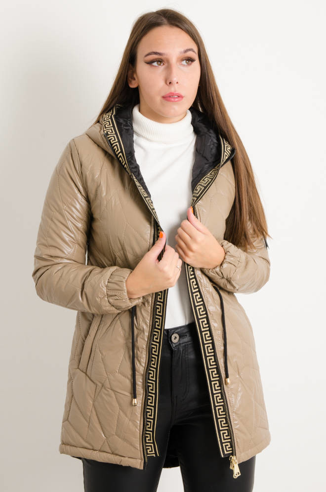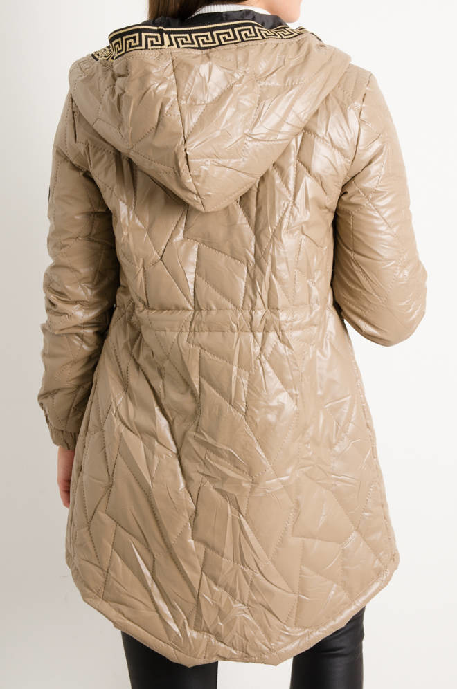 KURTKA ASYMETRYCZNA PIKOWANA WIĄZANA W PASIE- BEŻOWA