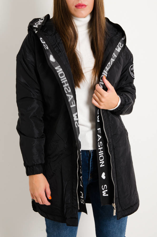 KURTKA Z OZDOBNĄ GUMĄ I ZAMKAMI PO BOKACH- CZARNA